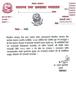 हेर्नुहोस् स्वास्थ्य मन्त्रालयको जारी गरेको विज्ञप्ति :