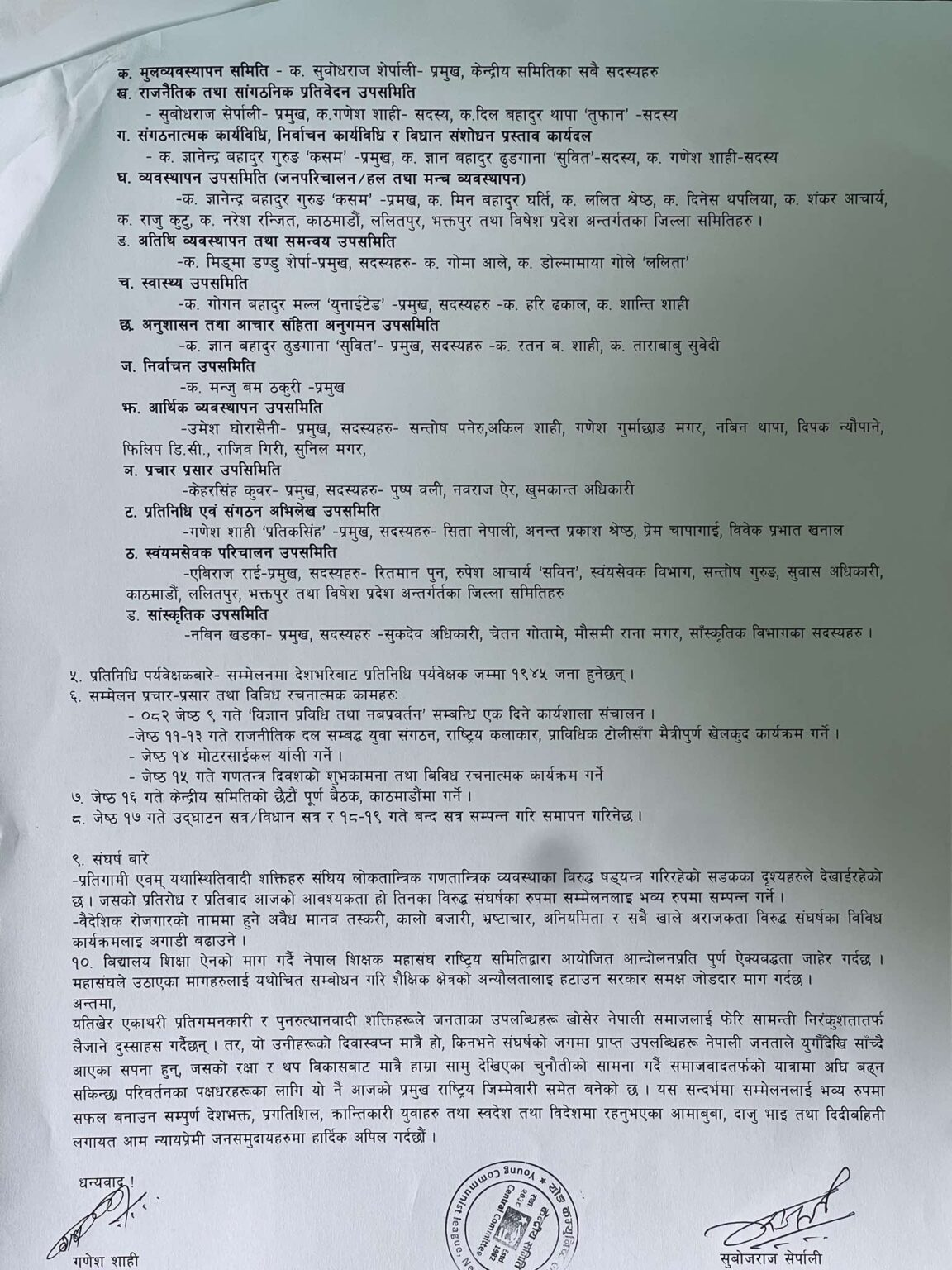 बागमतीको वैशाख १७ र १८ र विशेष प्रदेशको वैशाख १९ गते काठमाडौंमा, गण्डकीको वैशाख २० र २१ गते पोखरामा, सुदूरपश्चिमको वैशाख २३ र २४ गते धनगढीमा, कोशी प्रदेशको वैशाख २६ र २७ गते, कर्णालीको २९ र ३० गते सुर्खेतमा, लुम्बिनीको जेठ १ र २ गते दाङमा र मधेसको जेठ ४ र ५ गते गर्ने निर्णय भएको बताए ।