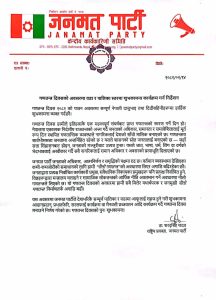 काठमाडौँ । जनमत पार्टीले गणतन्त्र दिवसको अवसरमा देशभरका वडादेखि पालिका स्तरसम्म विविध कार्यक्रम आयोजना गर्ने निर्णय गरेको छ ।