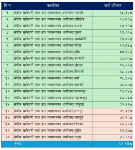 विभागीय विवरण अनुसार म्याग्दी ९९५.१४५०, इलाम ९९३.९२५०, जुम्ला ९९१.३६५०, रामेछाप ९९४.०९५० र अर्घाखाँची ९९०.८६५० कार्यालयले ९० प्रतिशत भन्दा माथिको उल्लेखनीय प्रगति गरेका छन् । यी कार्यालयहरूको निरन्तरता, दक्षता र बजेट कार्यान्वयन क्षमताले विभागको समग्र वित्तीय प्रदर्शनलाई ८२ प्रतिशत पार गर्न सहयोग पुर्याएको हो ।