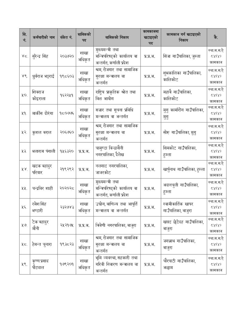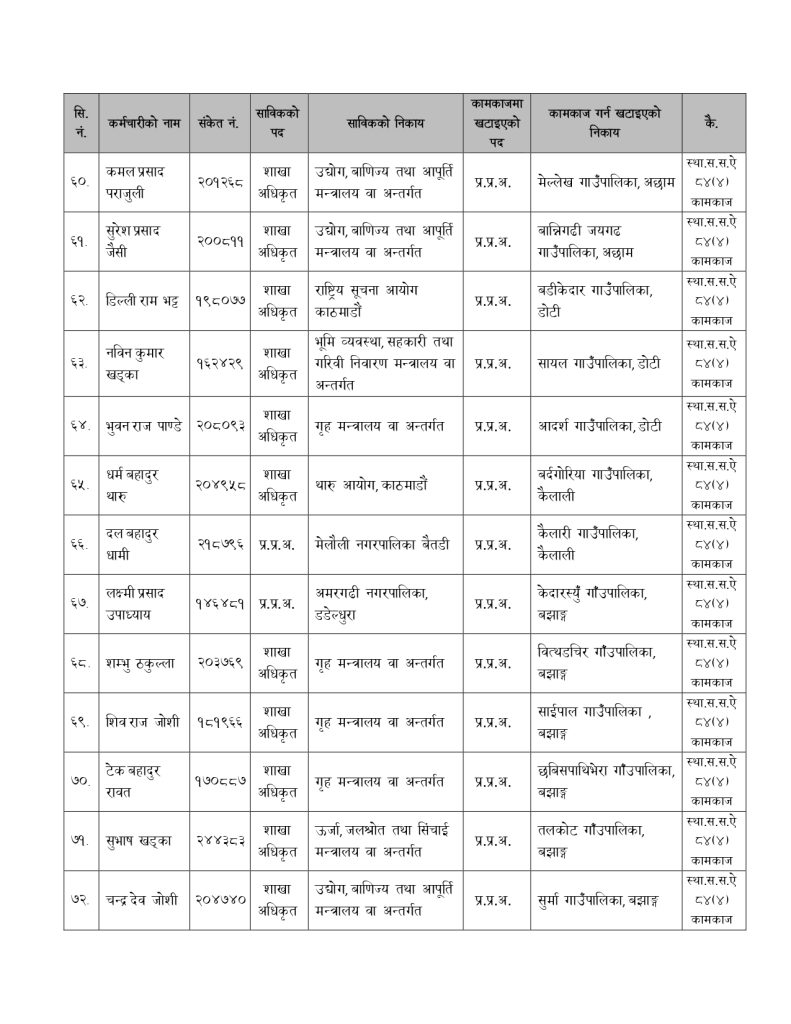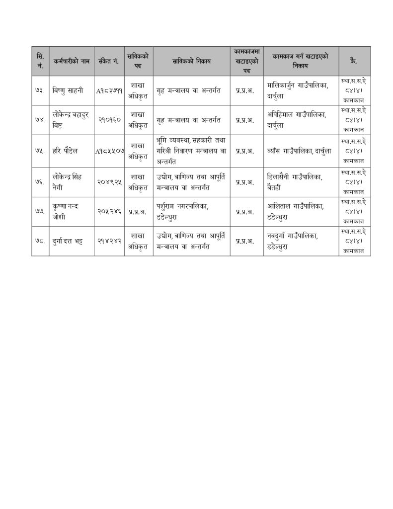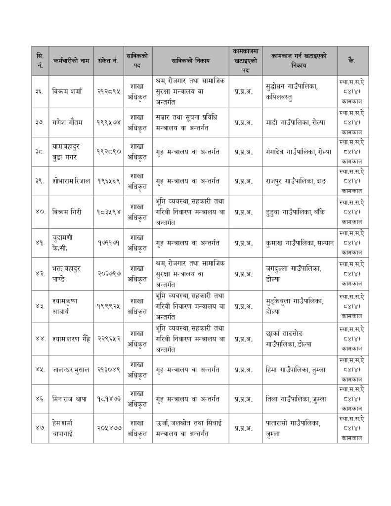 मन्त्रालयले बिहीबार निर्णय गरेर नेपाल प्रशासन सेवा, सामान्य प्रशासन समूह, राजपत्राकिंत तृतीय श्रेणी, शाखा अधिकृत वा सो सरहका कर्मचारीलाई रिक्त स्थानमा खटाएको हो ।